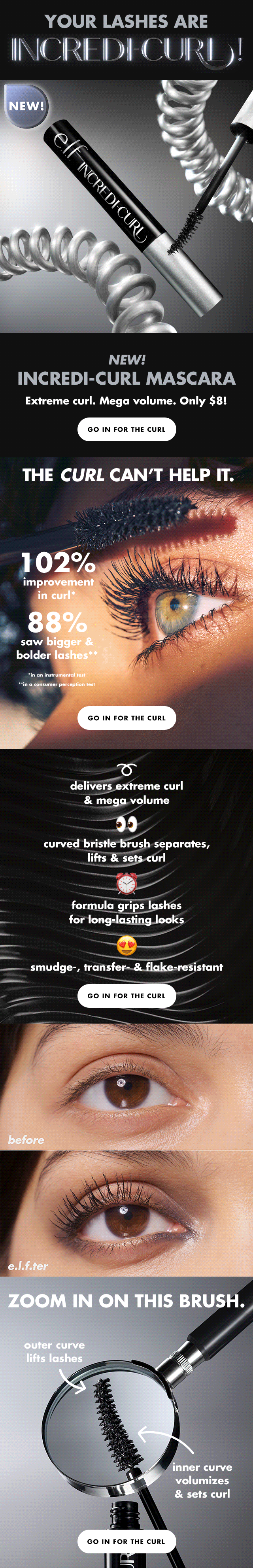 Campaign launch of INCREDI-CURL Mascara. Give every lash extreme curl and